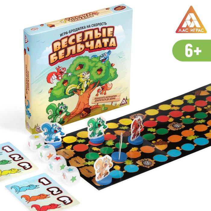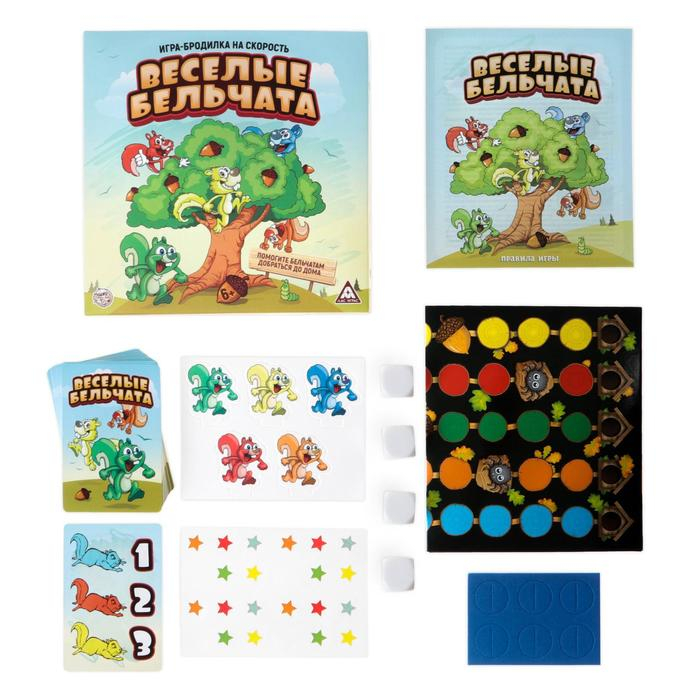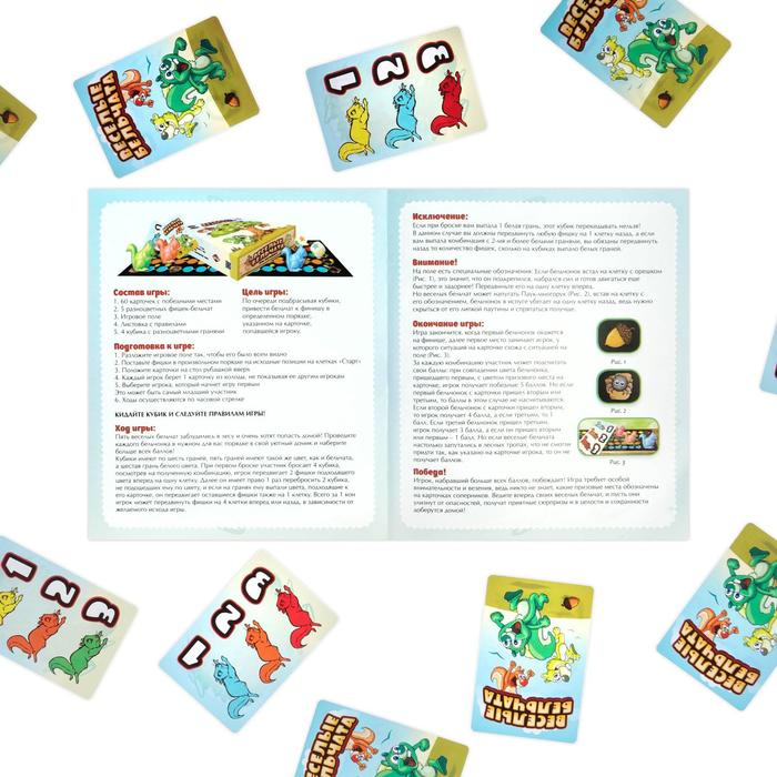 Настольная бродилка игра на скорость «Весёлые бельчата», 60 карт, 5 фишек, 4 кубика, 6+