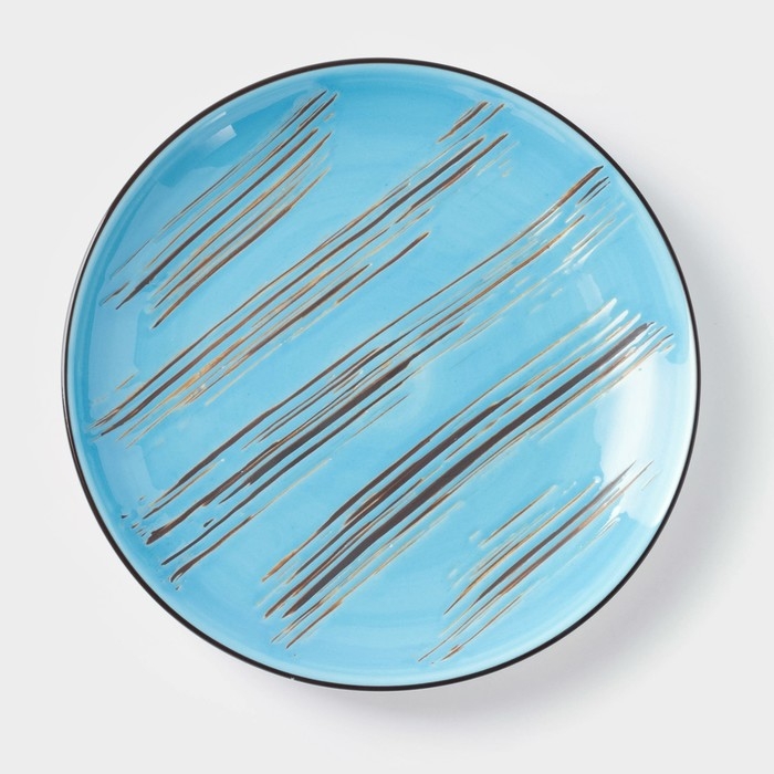 Тарелка Риштанская Керамика "Узоры", синяя, глубокая, микс, 20 см