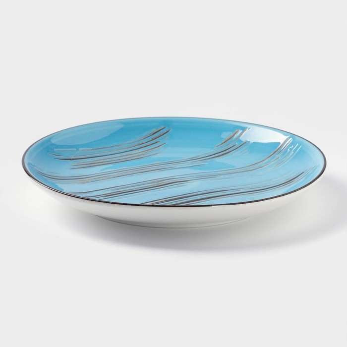 Тарелка фарфоровая десертная Wilmax Scratch, d=17,5 см, цвет голубой