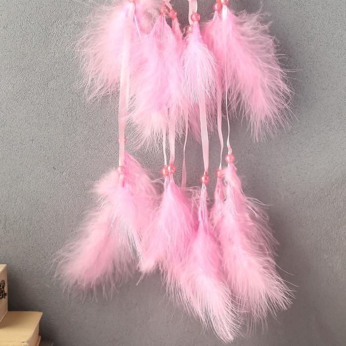 Ловец снов "Паутинка с жемчужинами" d=11 см светло-розовый 40 см