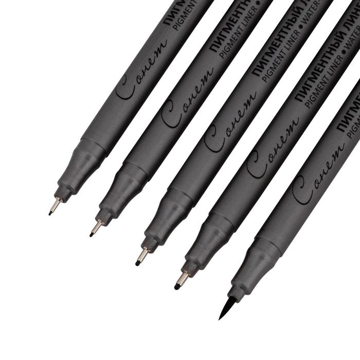 Набор ручек капиллярных ЗХК "Сонет", разные типы, 5 штук (0.1/.03./0.5/0.8/кисть), чёрный