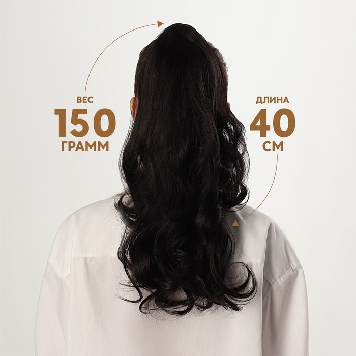 Хвост накладной, волнистый волос, на крабе, 40 см, 150 гр, цвет чёрный(#HTY4В)