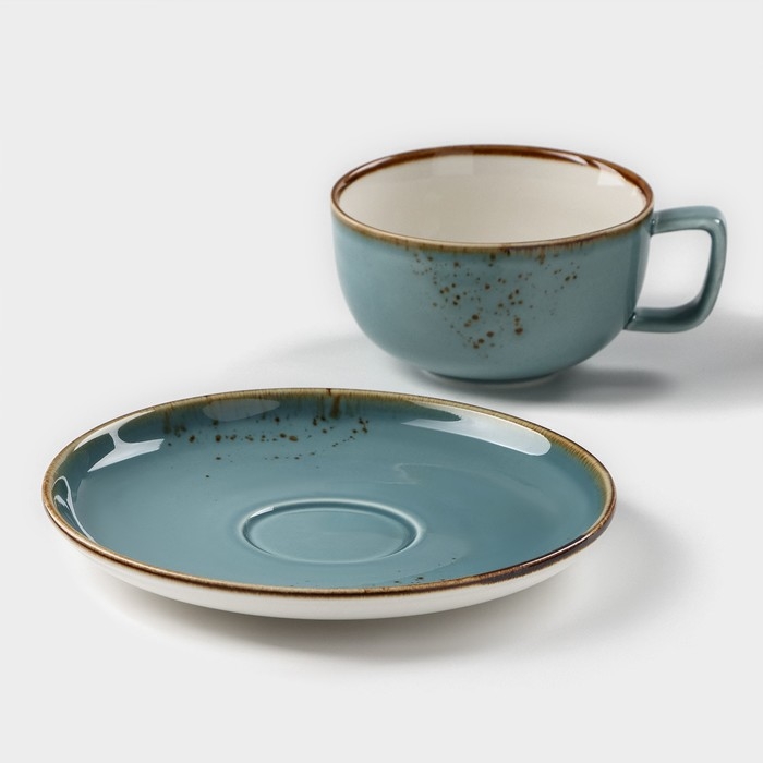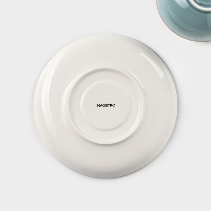 Чайная пара фарфоровая Magistro «Церера», 2 предмета: чашка 250 мл, блюдце d=16,5 см, цвет голубой