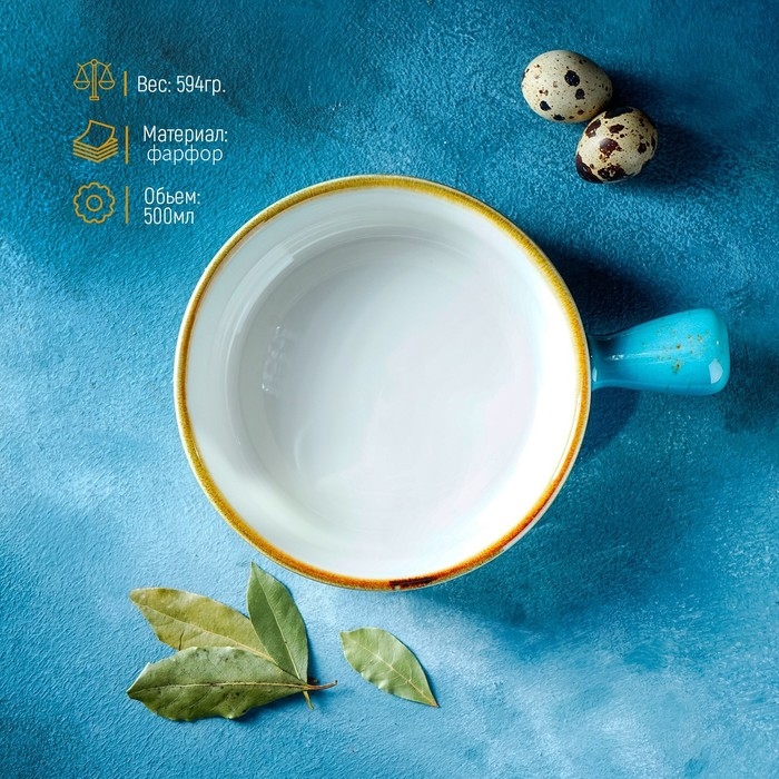 Кокотница фарфоровая Magistro «Церера», 500 мл, d=15 см, цвет голубой