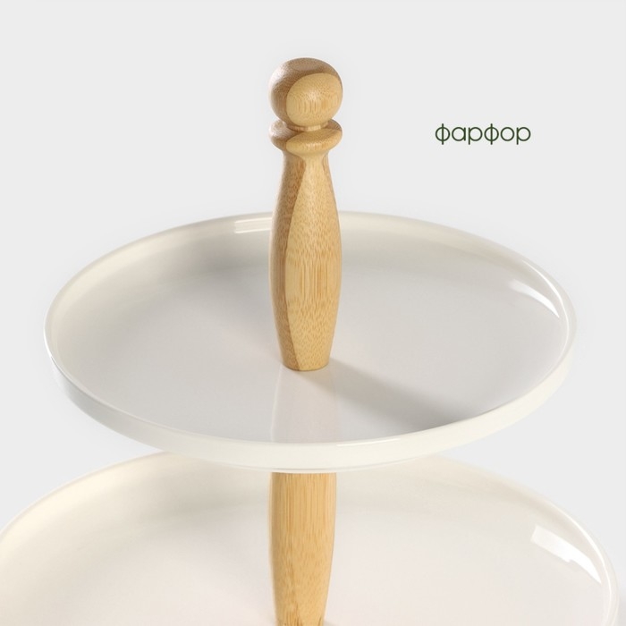 Блюдо фарфоровое 2-х ярусное Доляна «Эстет», d=25/20 см, цвет белый