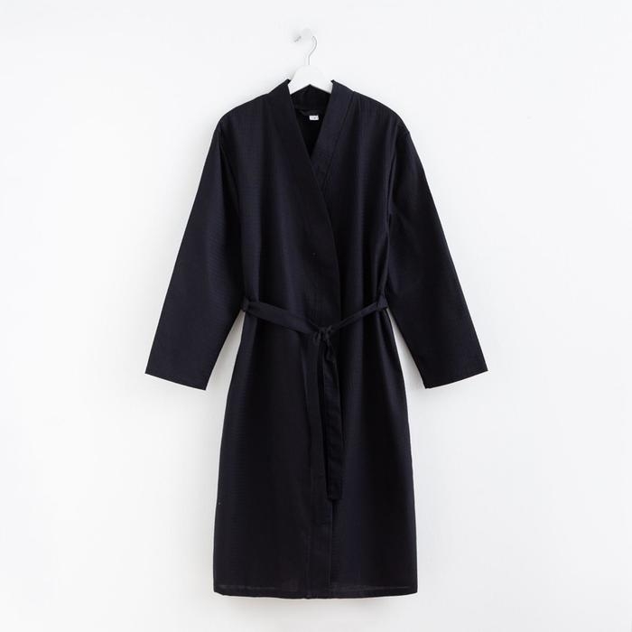 Халат вафельный мужской удлинённый Экономь и Я размер 54-56, цвет чёрный, 100% хлопок, 200г/м2