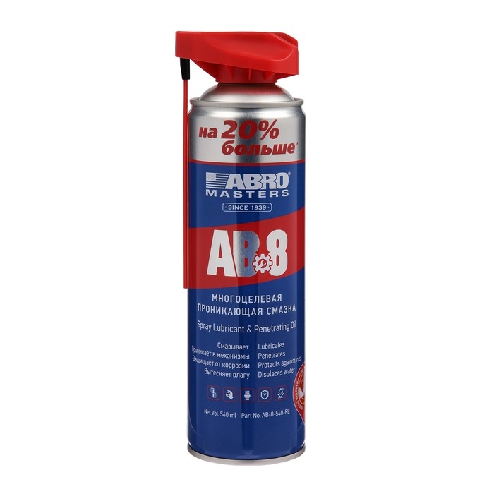 Смазка-спрей многоцелевая проникающая ABRO, 540 мл AB-8-540-RE