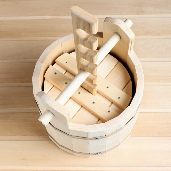 Кадка-бочка для засолки из липы, 10 л, с прижимным гнетом, нержавеющий обод "Добропаровъ"