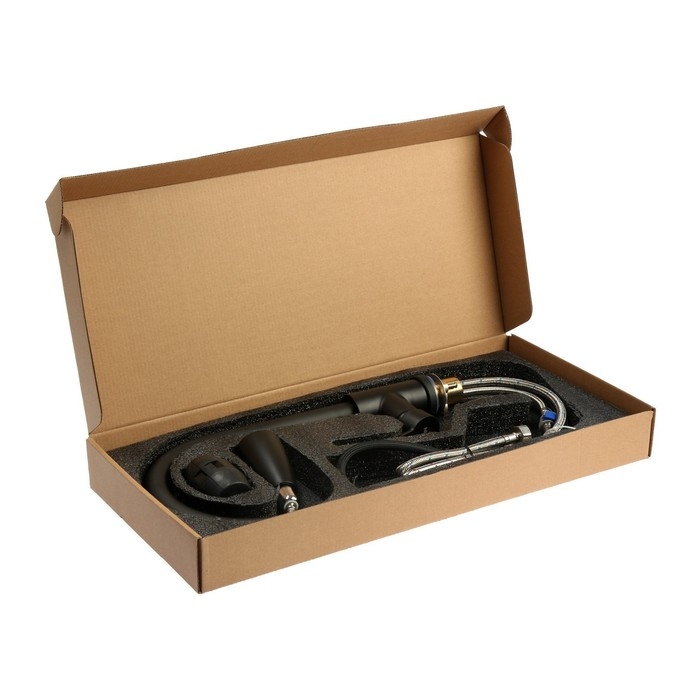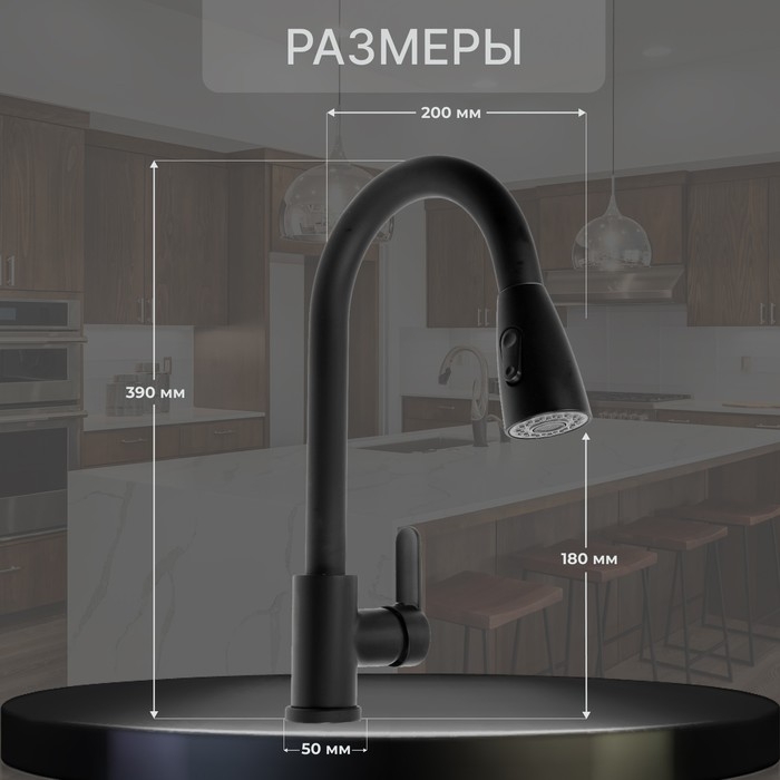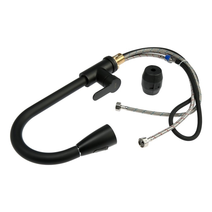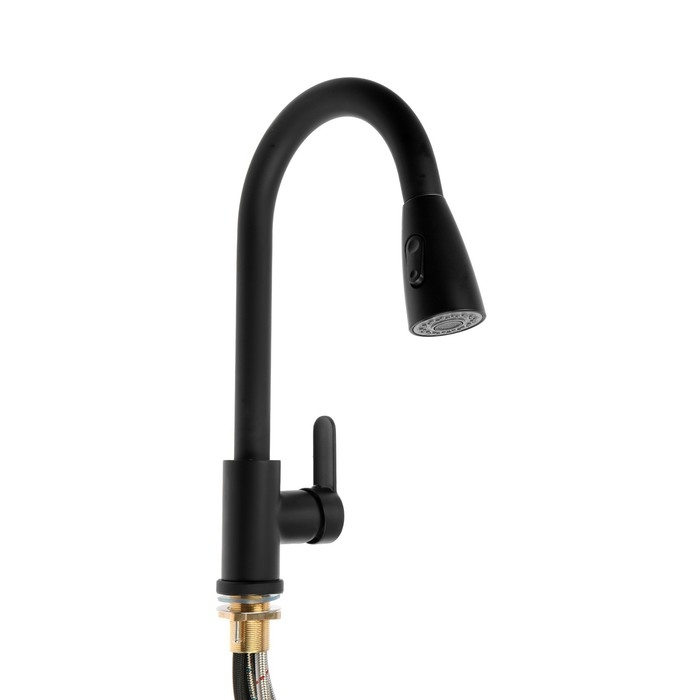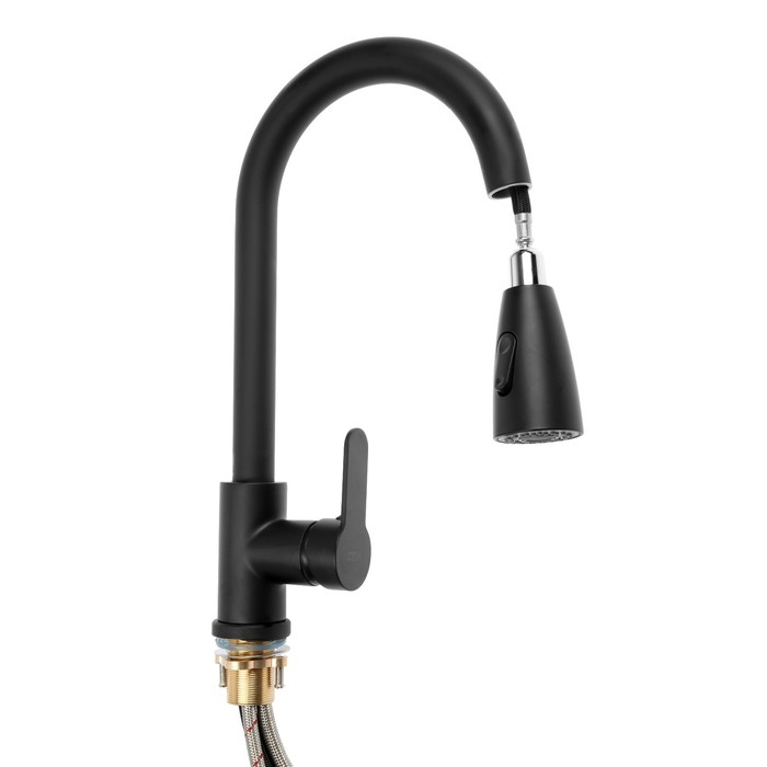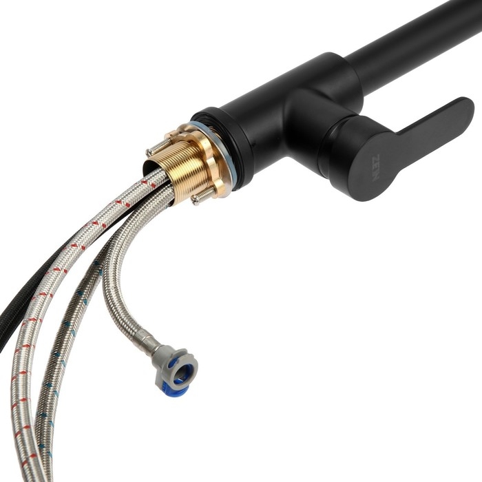 Смеситель для кухни ZEIN Z1299, однорычажный, выдвижная лейка, латунь, цвет черный