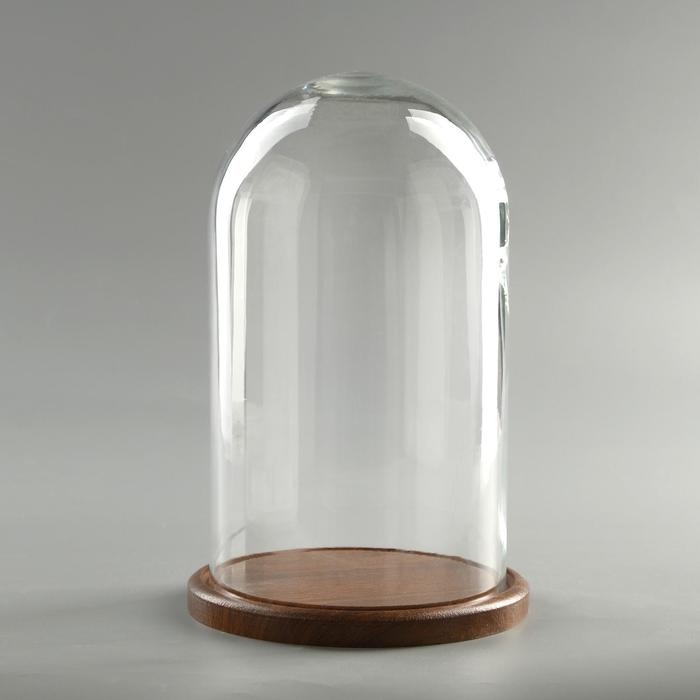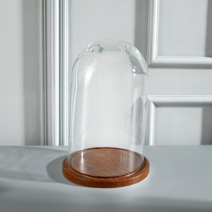 Стеклянный купол-клош на деревянной подставке "Венсан - 1", 25х15 см, коричневый
