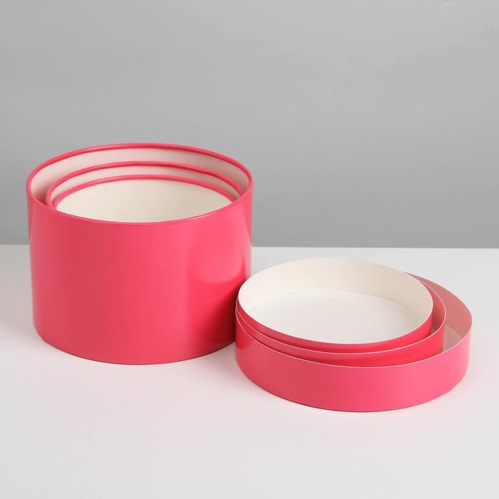 Набор шляпных коробок 3 в 1 малиновый, упаковка подарочная, 16 х 10, 14 х 9, 13 х 8,5 см