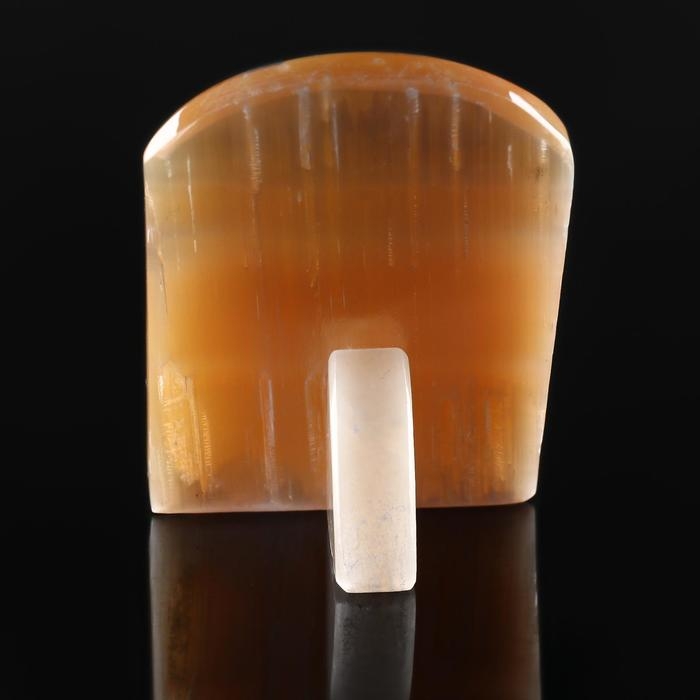 Селенит — это материал, который относится к разновидности гипса, жёлто-розового цвета с шелковистым блеском. Внутренние волокна расположены плотно, это даёт эффект «кошачьего глаза». Изделия из селенита завораживают игрой света, нежными тонами и хрупкостью. При прикосновении есть ощущение исходящей энергии.