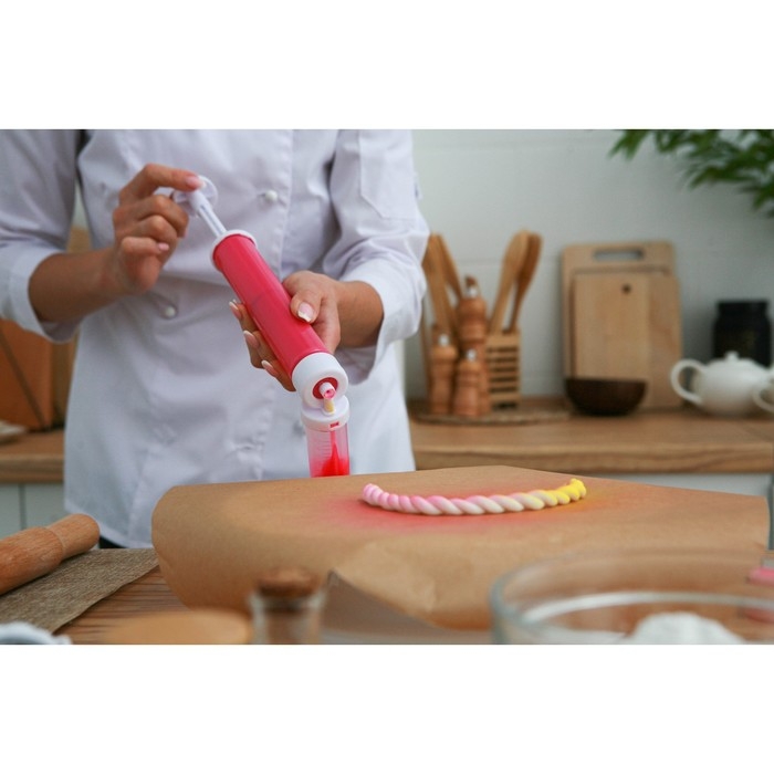 Кондитерский аэрограф — незаменимый инструмент для окрашивания тортов, пирожных и других десертов. Аэрограф дополнит арсенал как профессионального кулинара, так и любителя. Преимущество устройства в том, что цветное покрытие наносится равномерным тонким слоем. А также с этим инструментом меньше расходуется краситель, поэтому вы точно не добавите лишнего.