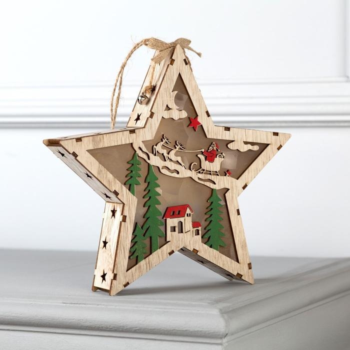 Светодиодная фигура «Звезда с новогодним пейзажем» 22 × 22 × 4 см, дерево, батарейки АААх2 (не в комплекте), свечение тёплое белое