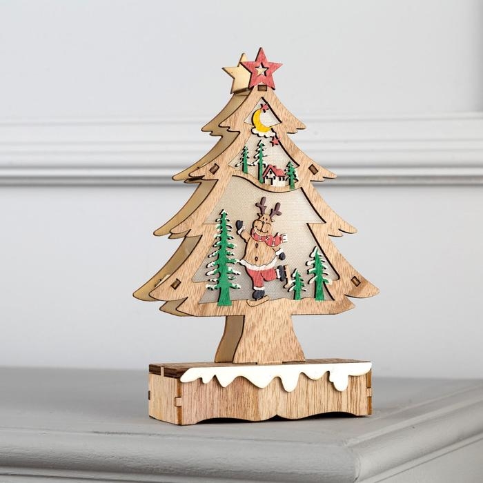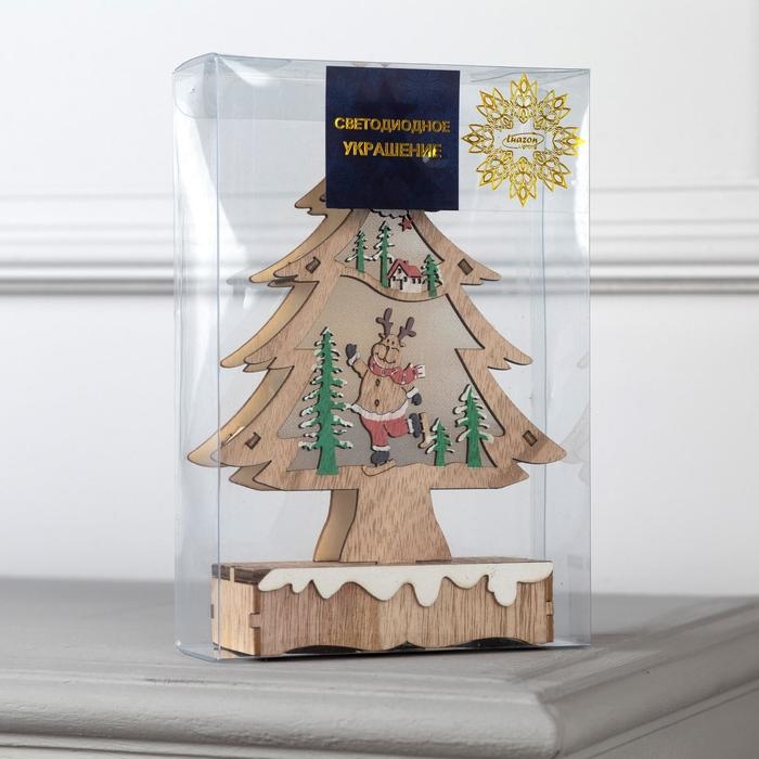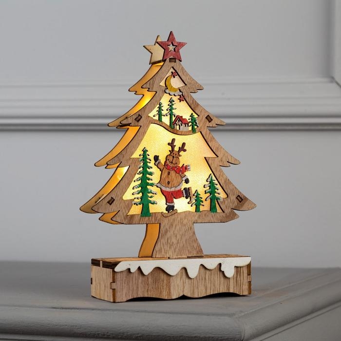 Светодиодная фигура «Ёлка с оленем» 12 × 20 × 5 см, дерево, батарейки АААх2 (не в комплекте), свечение тёплое белое