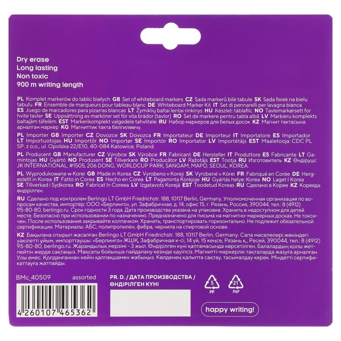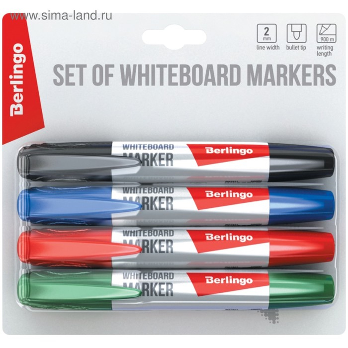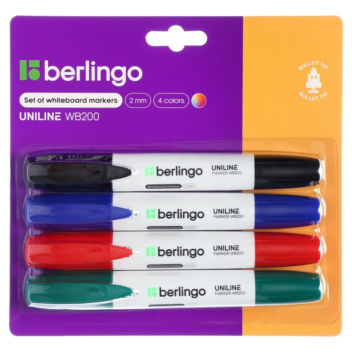 Набор маркеров для доски 4 цвета, Berlingo 2.0 мм