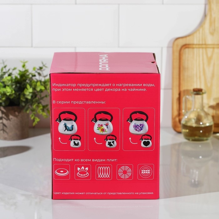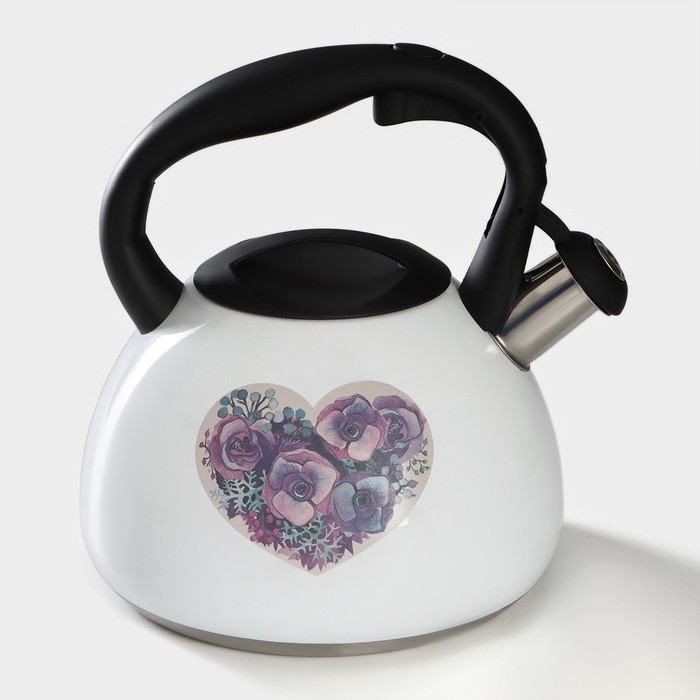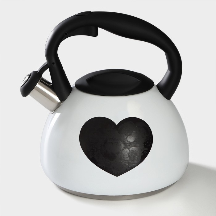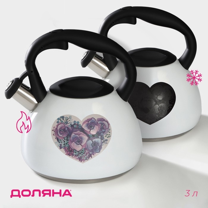 Чайник со свистком из нержавеющей стали Доляна «Сердце», 3 л, с индикатором нагрева