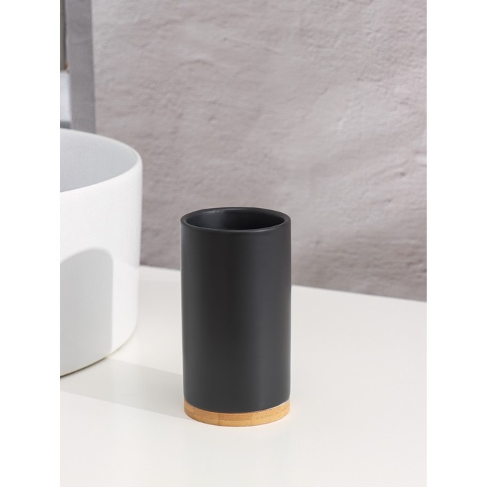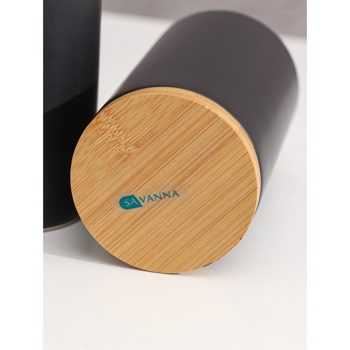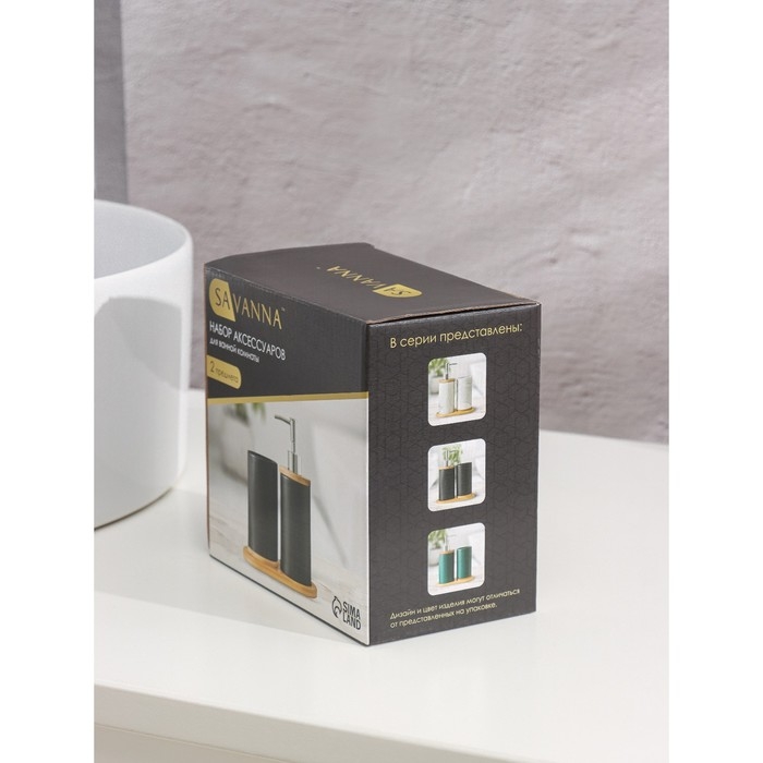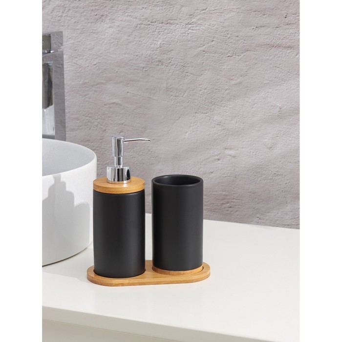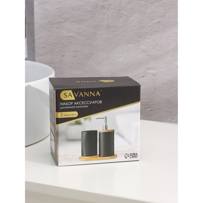 Набор аксессуаров для ванной комнаты SAVANNA «Натура», 2 предмета (дозатор 400 мл, стакан, на подставке), цвет чёрный
