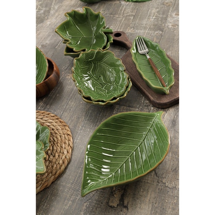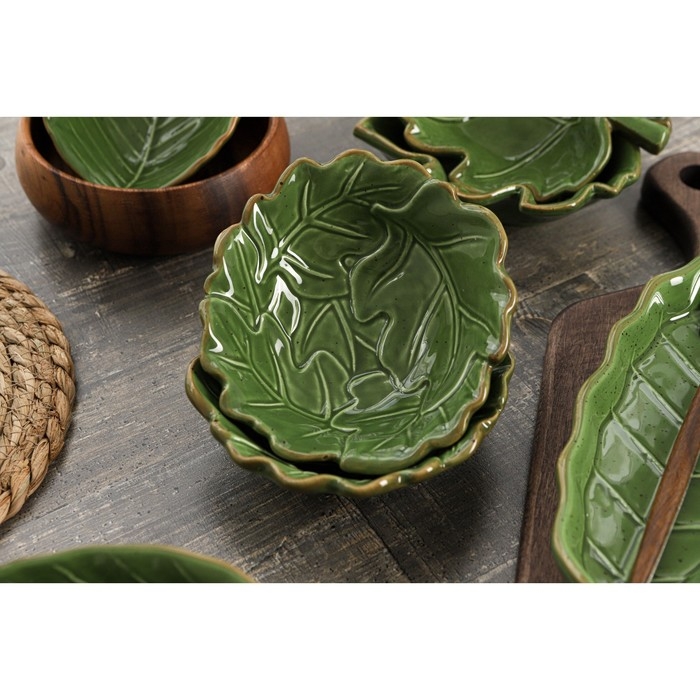 Салатник Доляна «Лист», 270 мл, 13,8×12,4 см, цвет зелёный