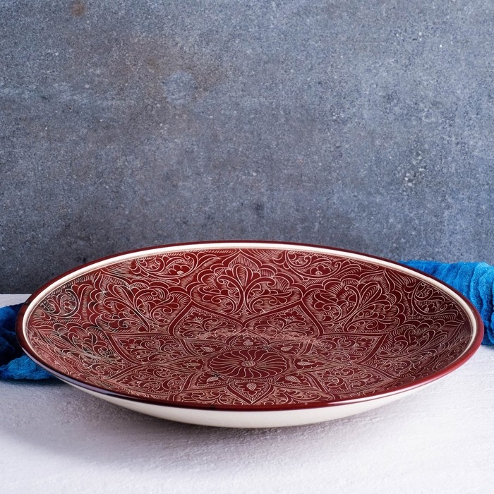 Ляган Риштанская Керамика "Узоры", 42 см, коричневый микс