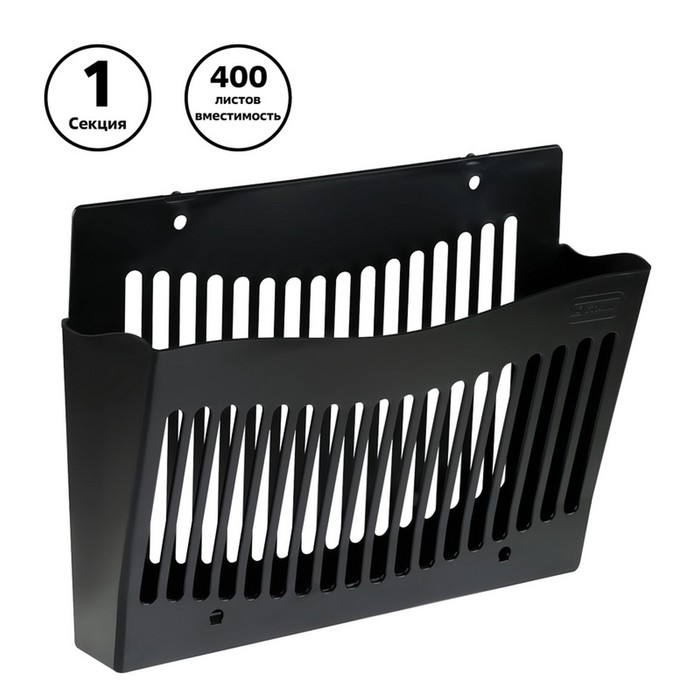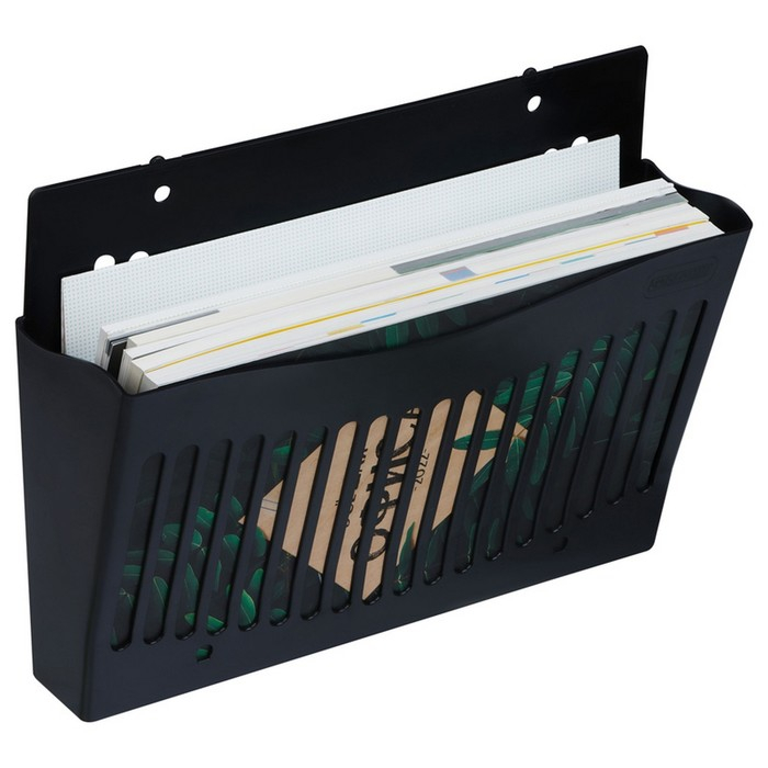 Настенный лоток для бумаг Стамм, 26 х 10 х 34 см, пластиковый, черный