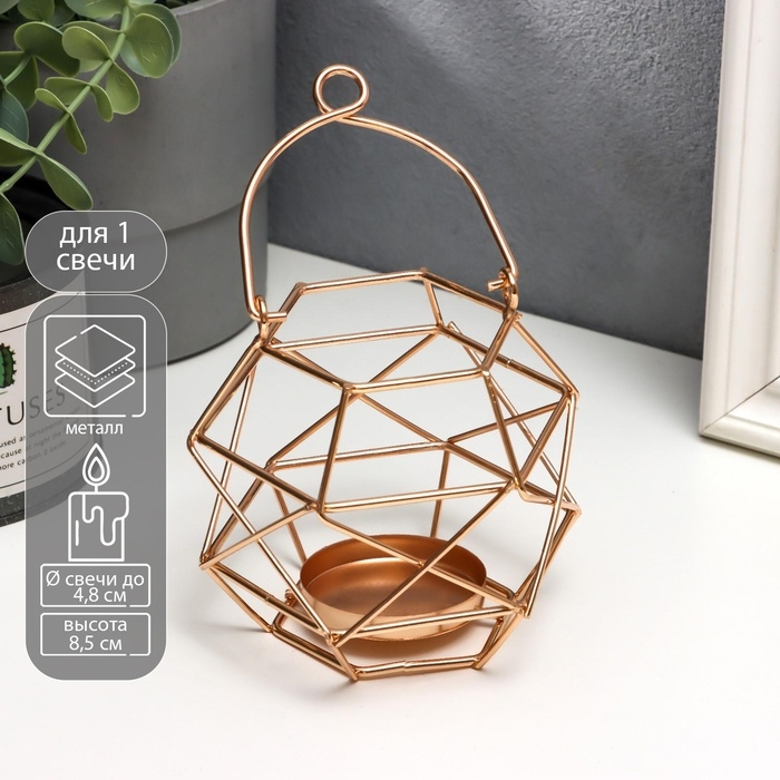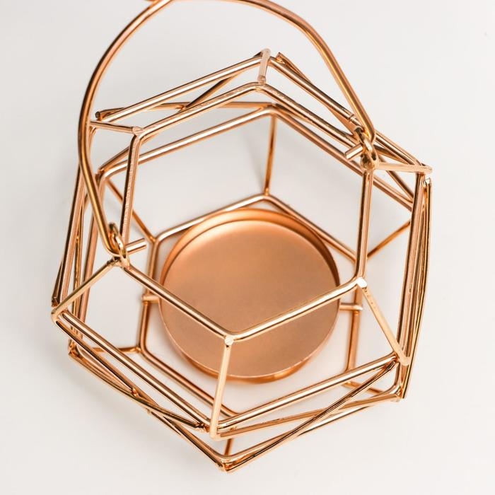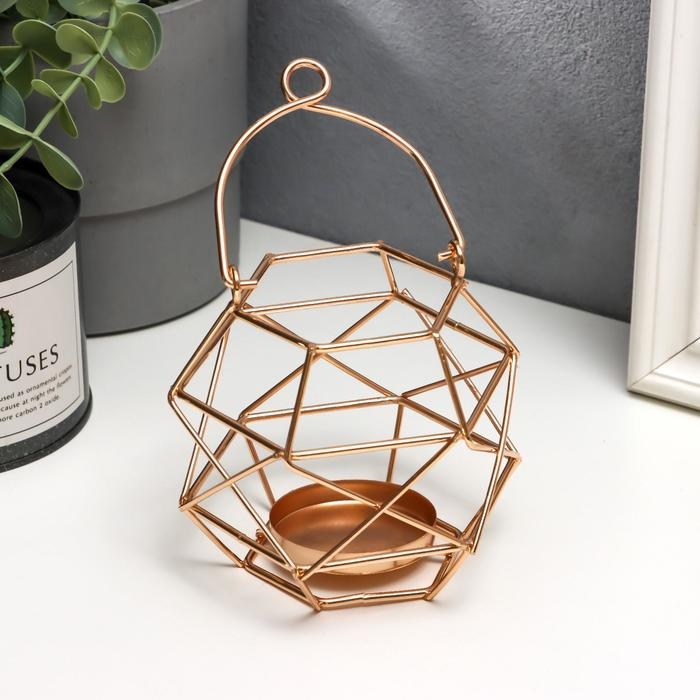 Подсвечник металл на 1 свечу "Геометрия" золото с ручкой 8,5х10х9 см