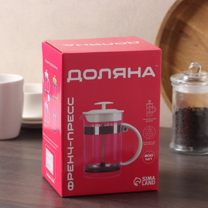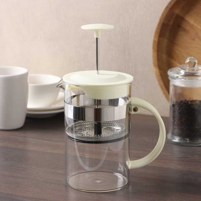 Чайник заварочный френч - пресс Доляна «Гарсон», 800 мл, стекло, цвет молочный