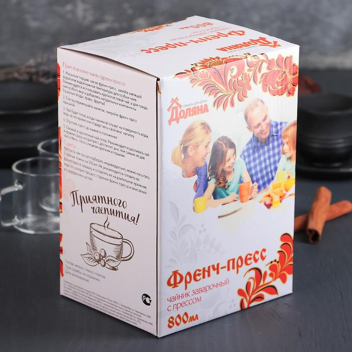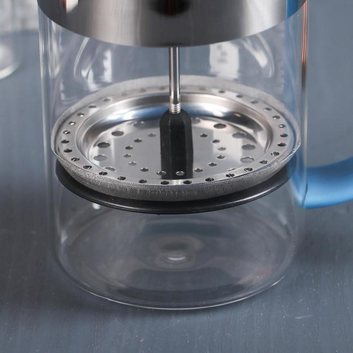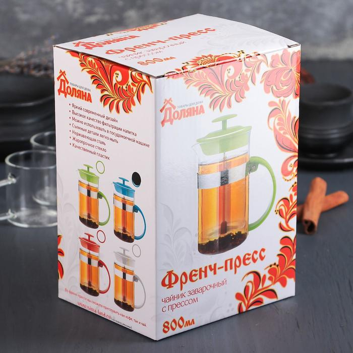 Чайник заварочный френч - пресс Доляна «Гарсон», 800 мл, стекло, цвет голубой