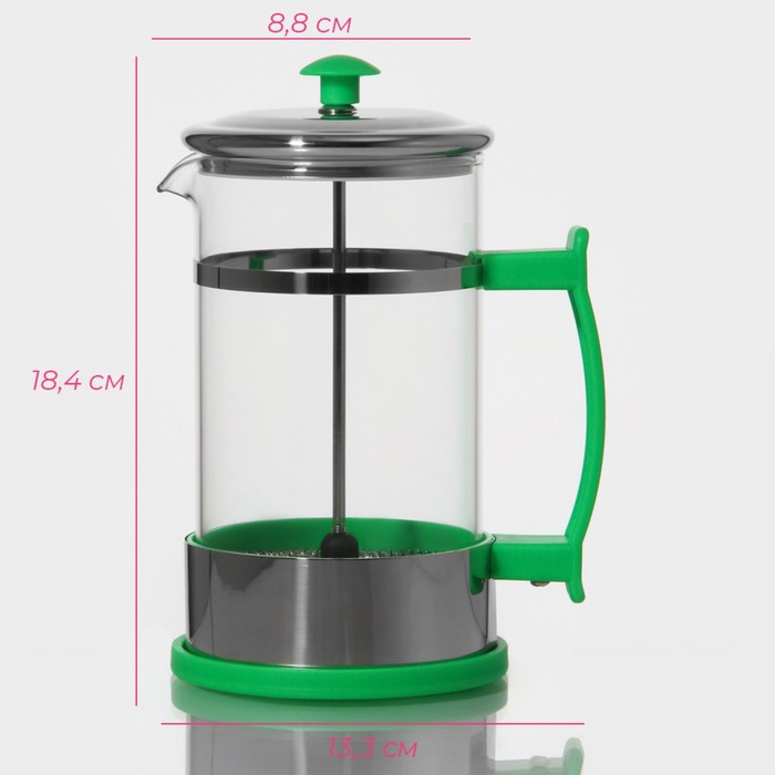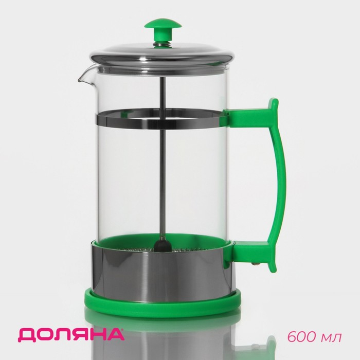 Чайник заварочный френч - пресс Доляна «Риц», 600 мл, стекло, цвет зелёный