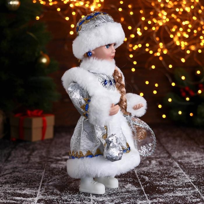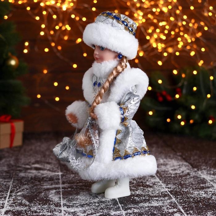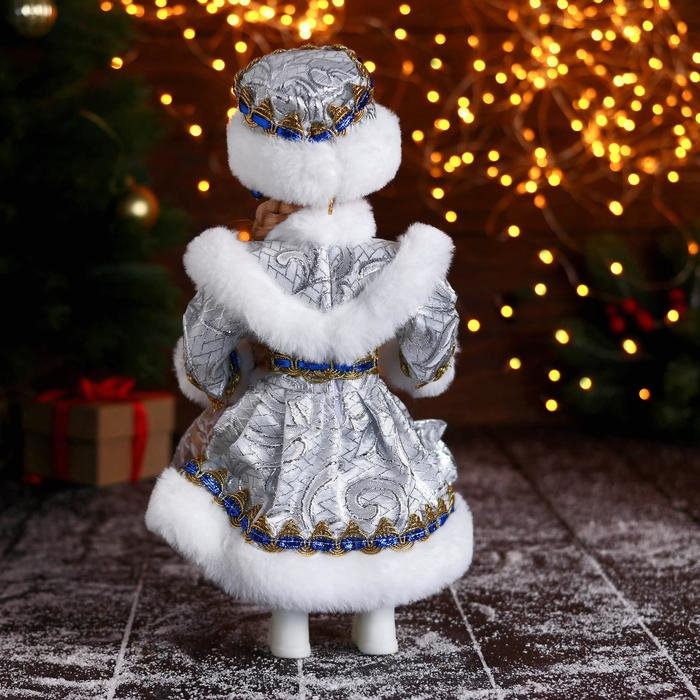 Снегурочка "В пышной шубке" с синими украшениями, 14х30 см