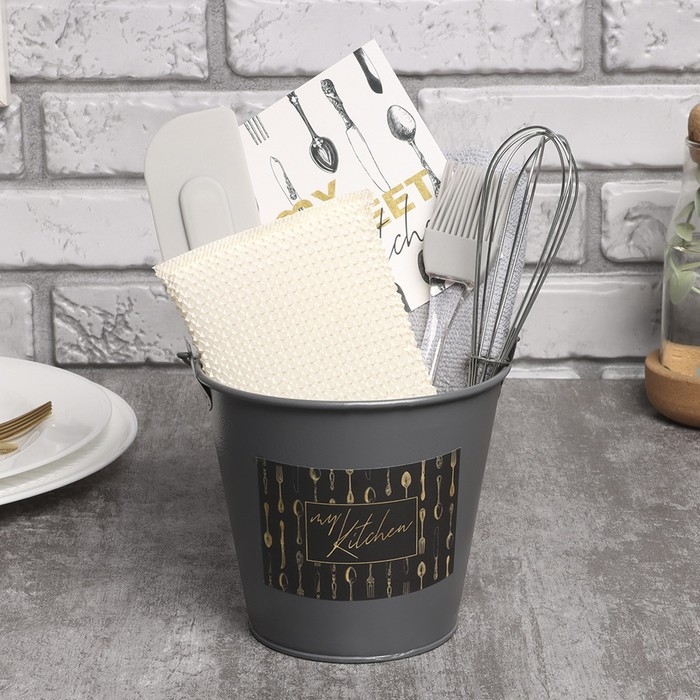 Набор подарочный Kitchen: ведро, полотенце 35х60, лопатка, кисть, венчик,губка