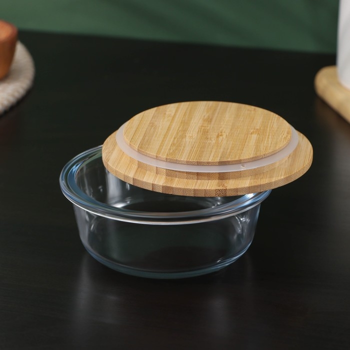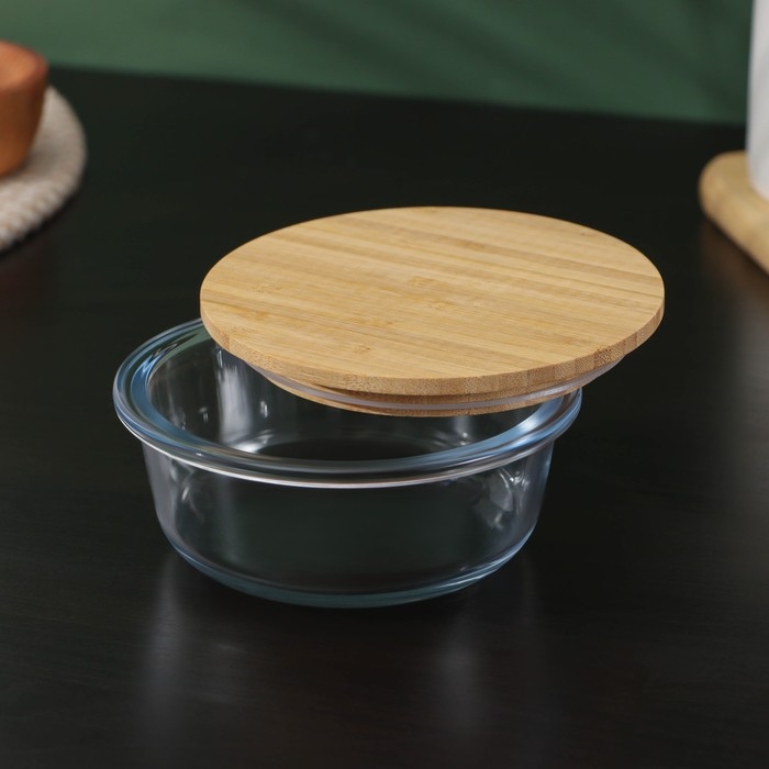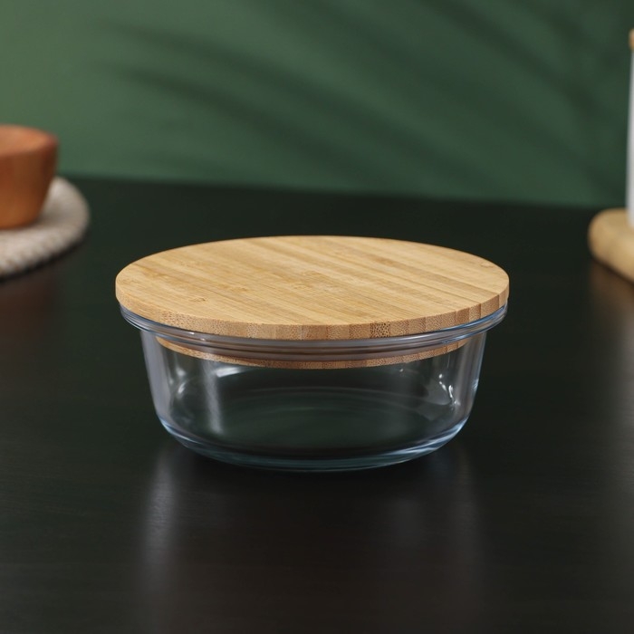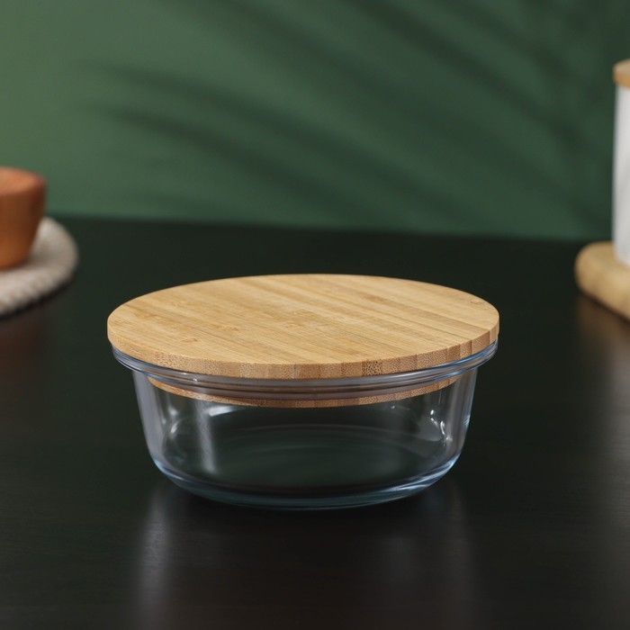 Контейнер для еды из жаропрочного стекла с бамбуковой крышкой BellaTenero «Эко», 350 мл, 13×5,5см