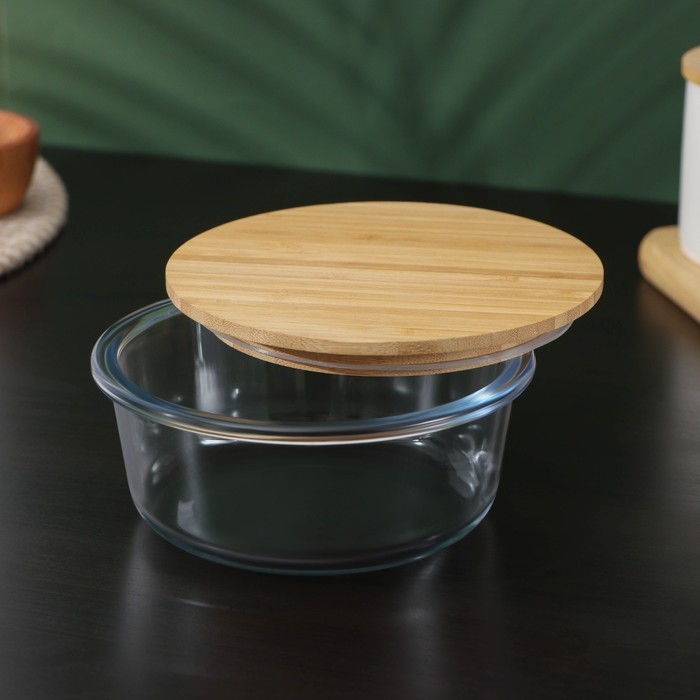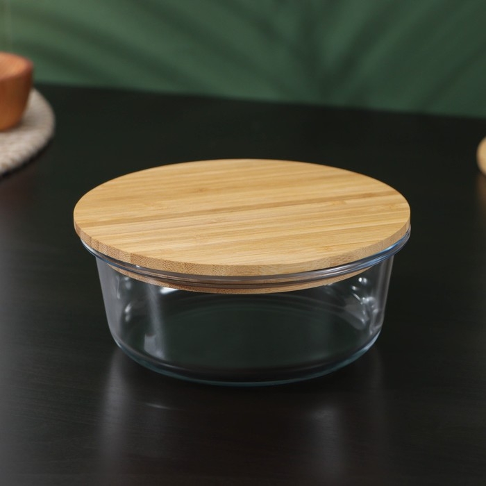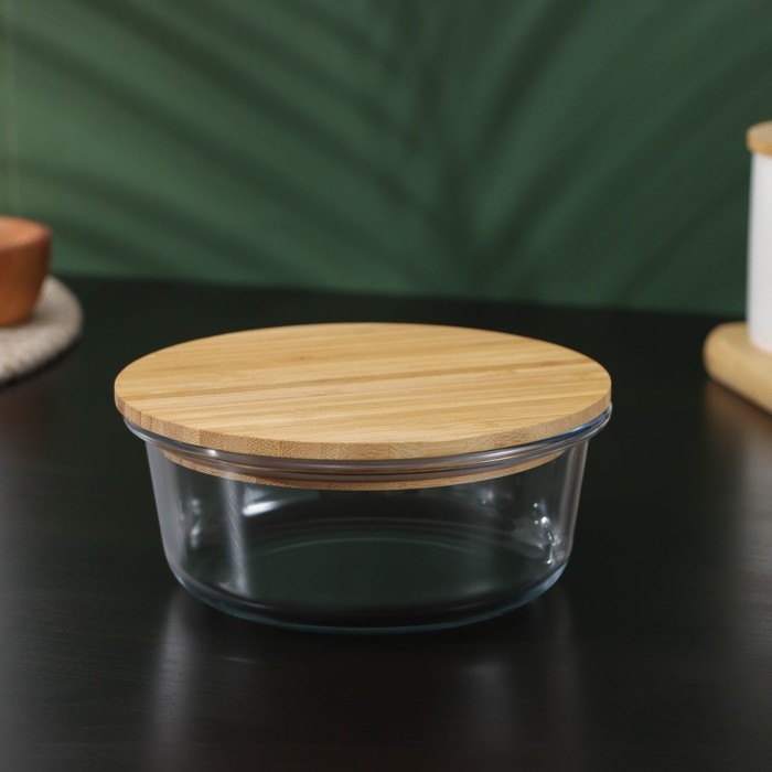 Контейнер для еды из жаропрочного стекла с бамбуковой крышкой BellaTenero «Эко», 620 мл, 15×6,5 см