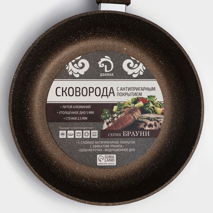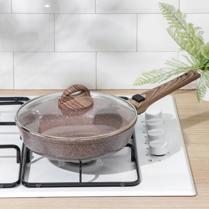 Сковорода Доляна «Брауни», d=24 см, съёмная ручка, стеклянная крышка, антипригарное покрытие, индукция