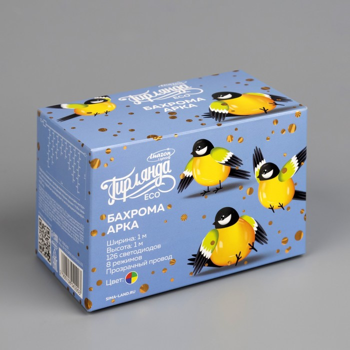 Гирлянда «Бахрома-арка» 1 × 1 м, IP20, прозрачная нить, 126 LED, свечение мульти, 8 режимов, 220 В