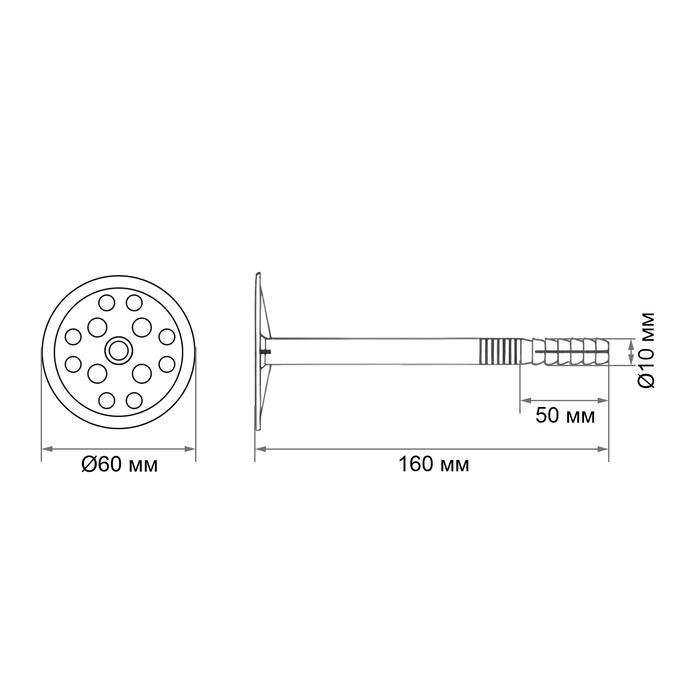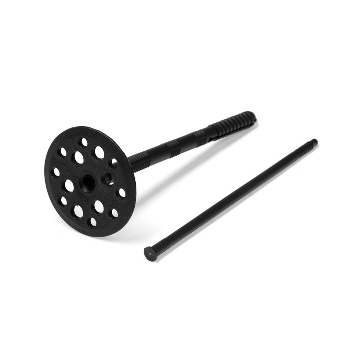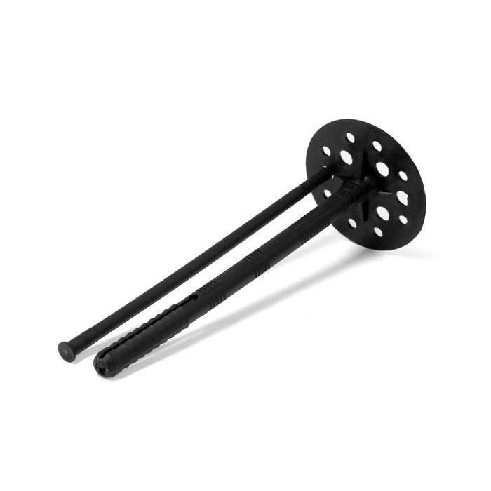 Дюбель состоит из двух частей: распорный стержень, закрепляющий элемент в отверстии и широкая шляпка, удерживающая материал. Благодаря конструкции, крепеж надежно фиксирует теплоизоляционные материалы с основанием, выдерживает различные погодные воздействия и гарантирует длительный срок службы.