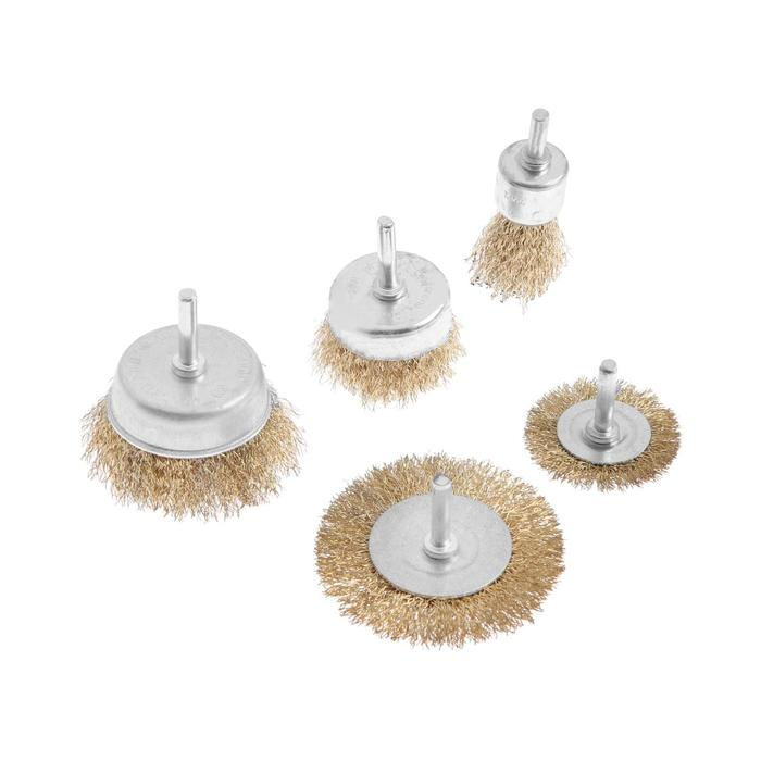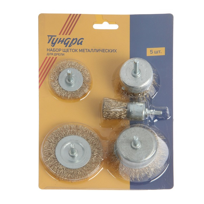 Набор щеток металлических для дрели ТУНДРА, плоские 50-75 мм, чашки 25-50-75 мм, 5 шт.
