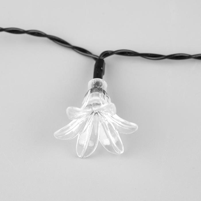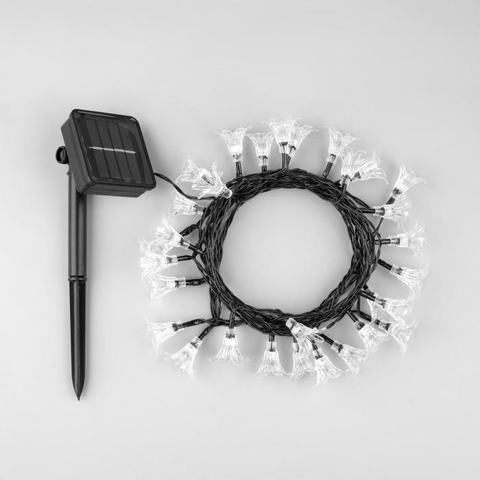 Гирлянда «Нить» 4.5 м с насадками «Лилии», тёмная нить, 30 LED, свечение белое, 2 режима, солнечная батарея