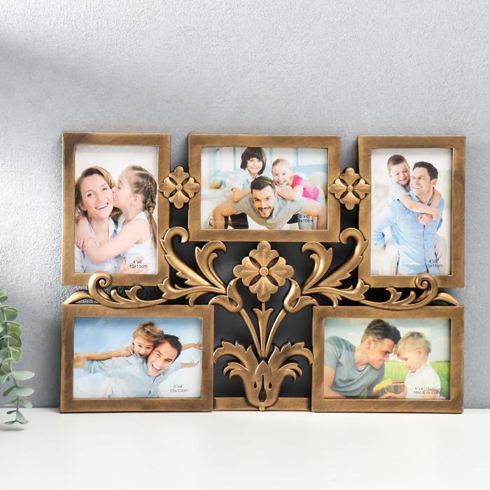 Фоторамка пластик на 5 фото 10х15 см "Листья и медальоны" тёмное золото 32х46 см