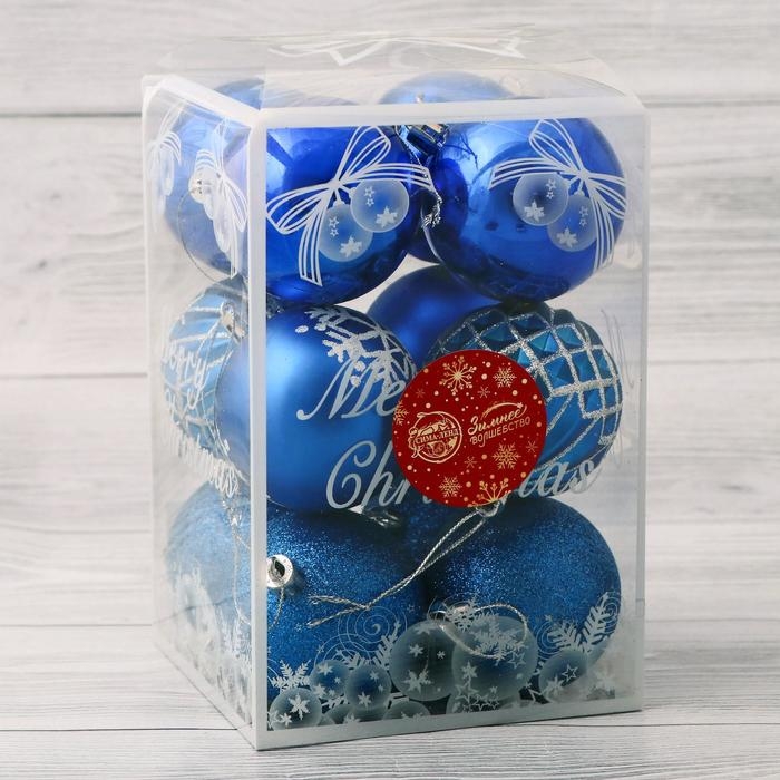 Набор шаров пластик d-6 см, 12 шт "Эльза" синий