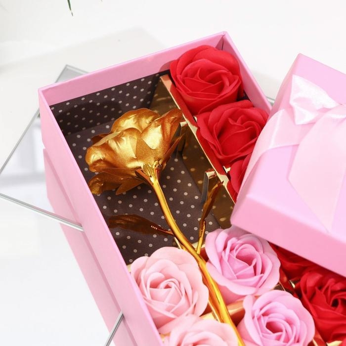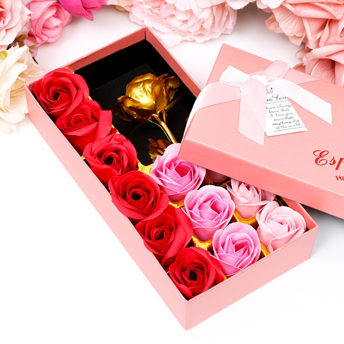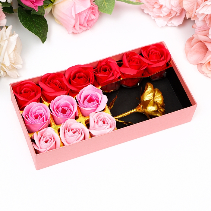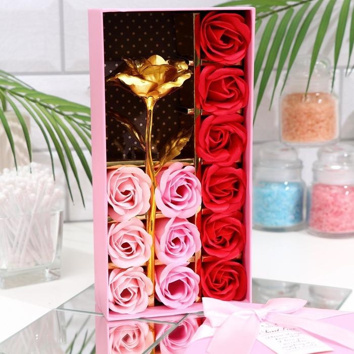Мыльные розочки цветных оттенков и золотая роза, набор