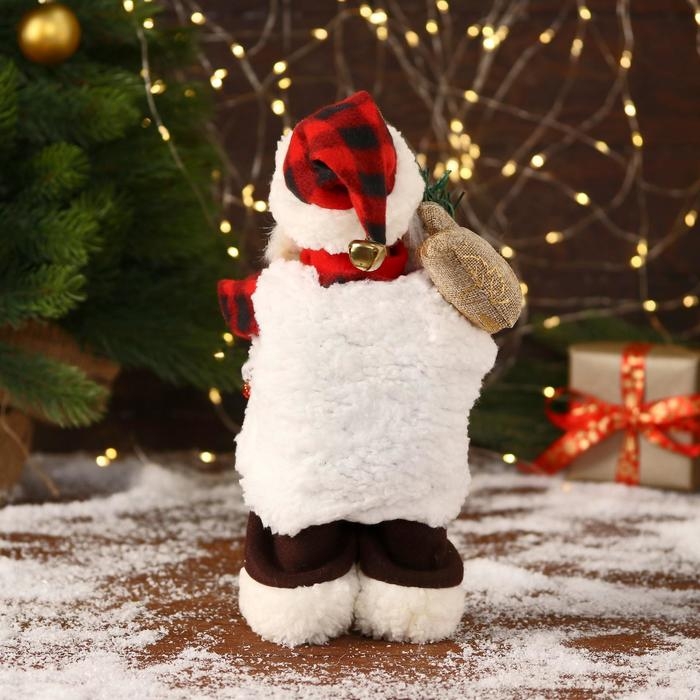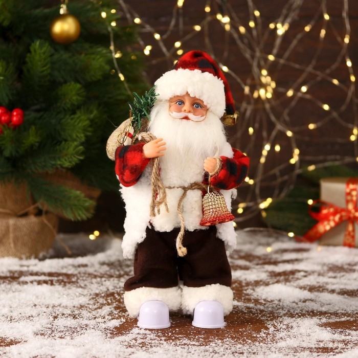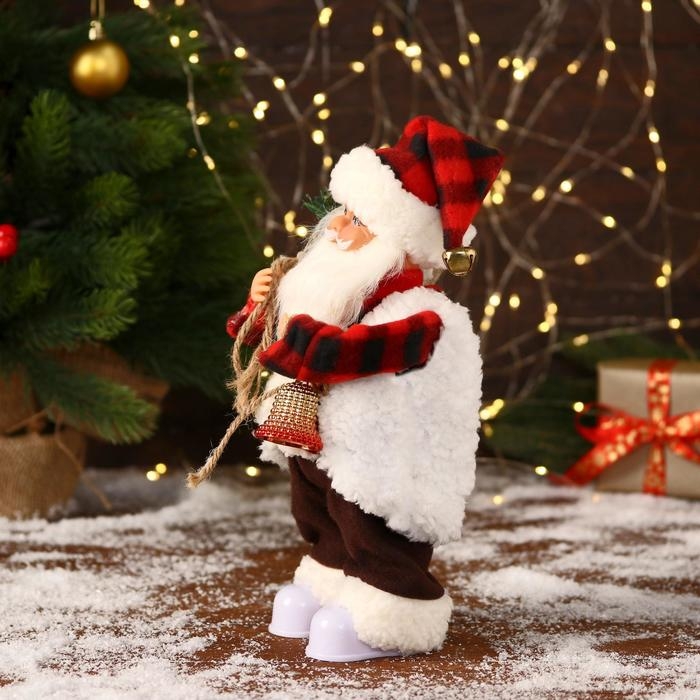 Дед Мороз "В клетчатом тулупе, с колокольчиком" двигается, ботинки светятся, 13х28 см