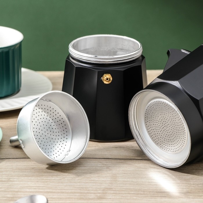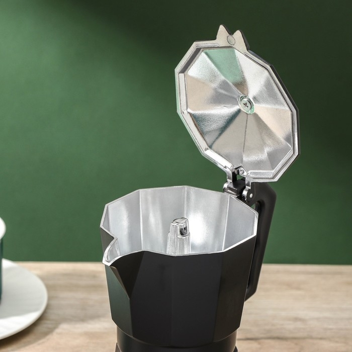 Кофеварка гейзерная Доляна Alum black, на 6 чашек, 300 мл, цвет чёрный