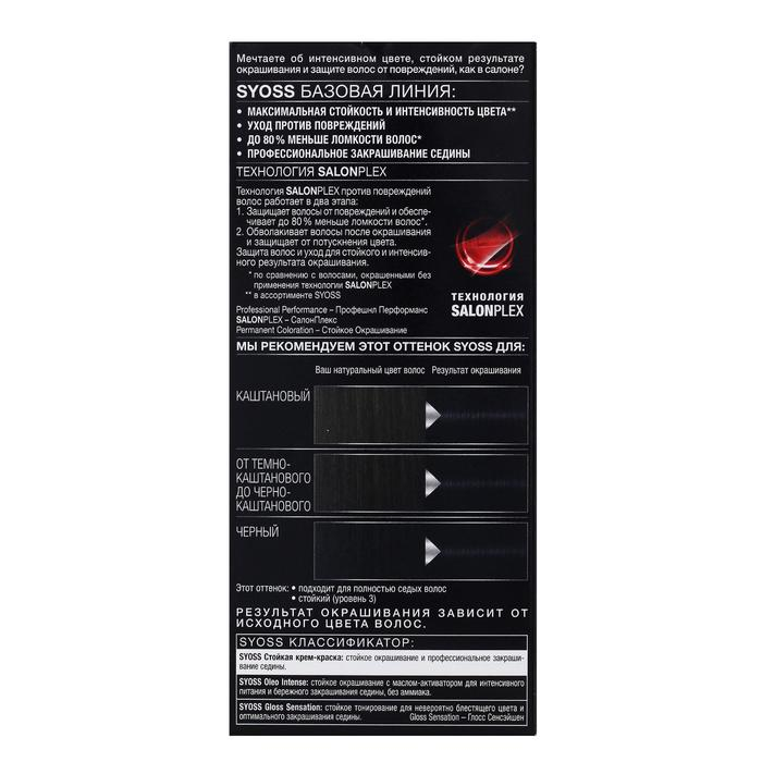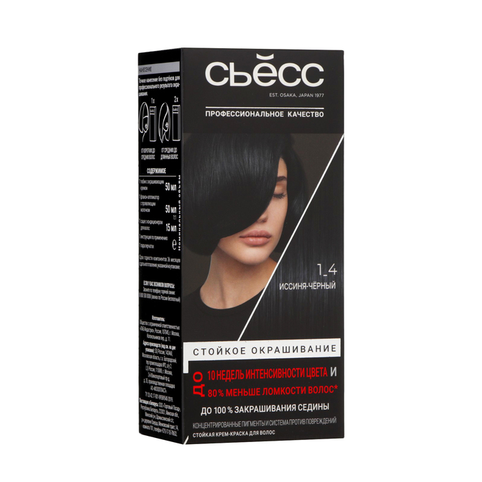 Cтойкая крем-краска для волос Сьесс Color, тон 1-4, иссиня-чёрный