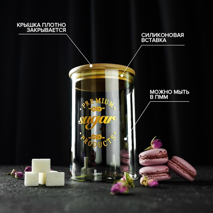 Банка стеклянная для хранения сыпучих продуктов «Эко. Сахар», 1 л, 10×15 см, с бамбуковой крышкой