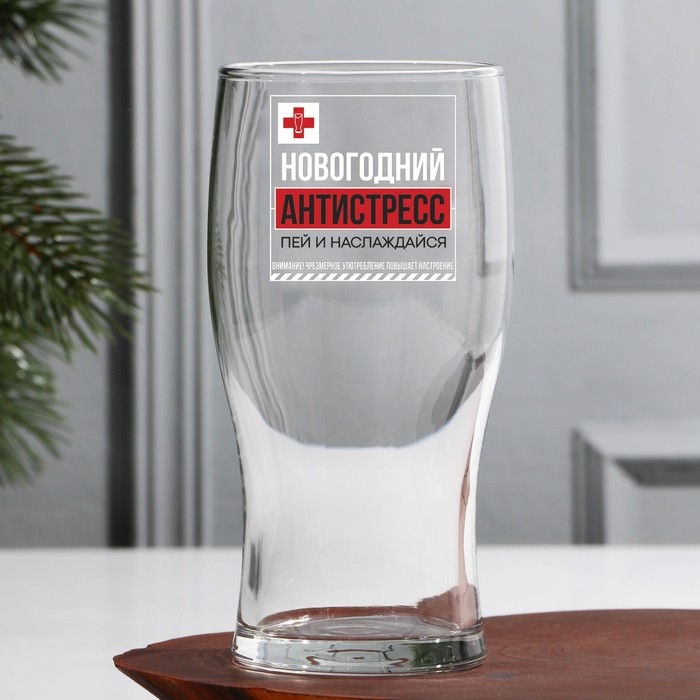 Пивной бокал «Новогодний антистресс, пей и наслаждайся», 500 мл, деколь
