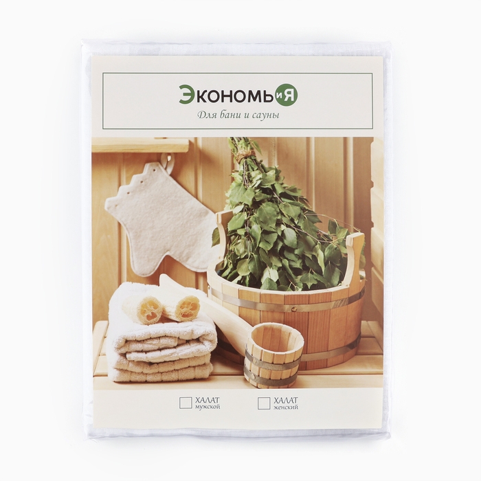 Халат вафельный мужской Экономь и Я рукав 3/4 цвет белый размер 54-56, 100% хлопок, 200 г/м2