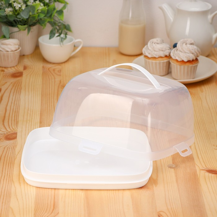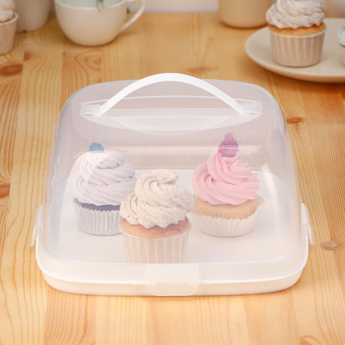Тортовница с защёлками, 28×28 см, цвет белый