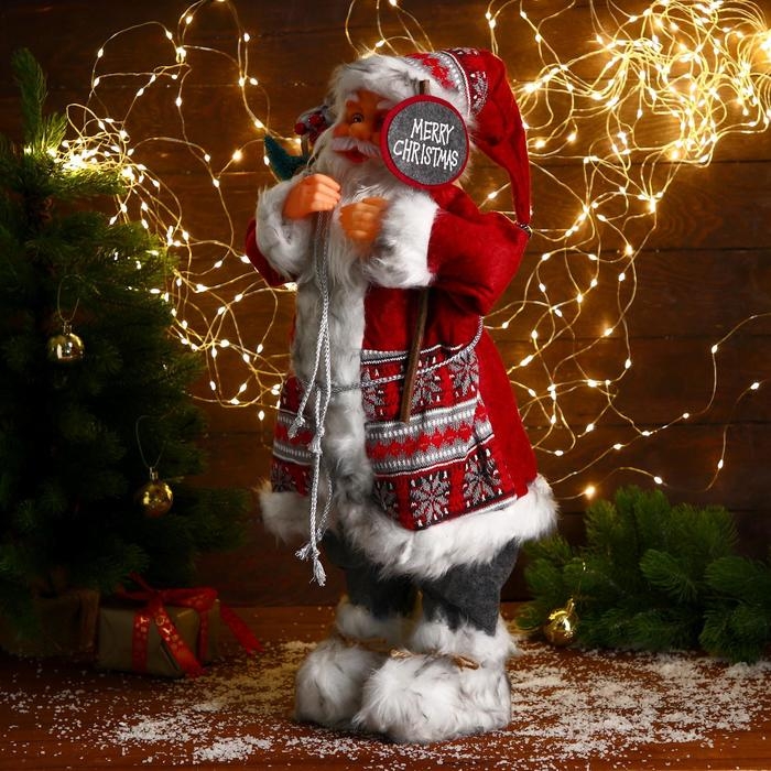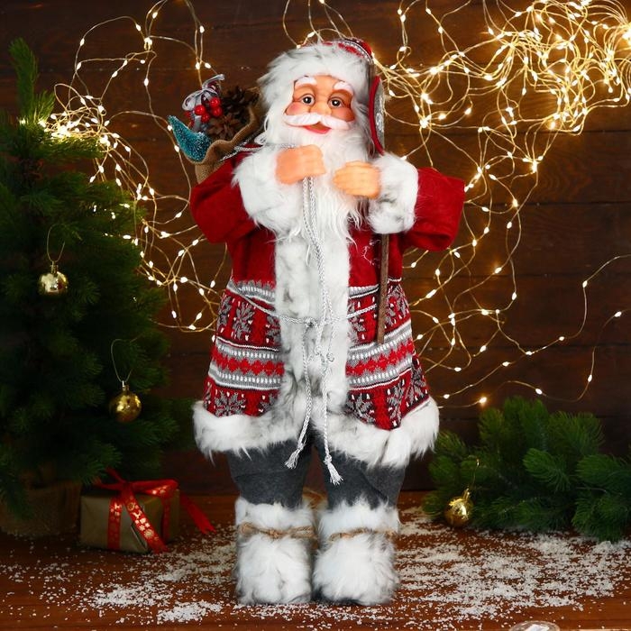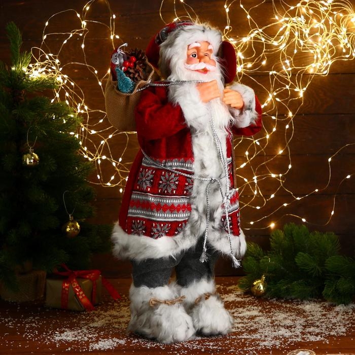 Дед Мороз "В красной шубке с орнаментом, с подарками" 60 см