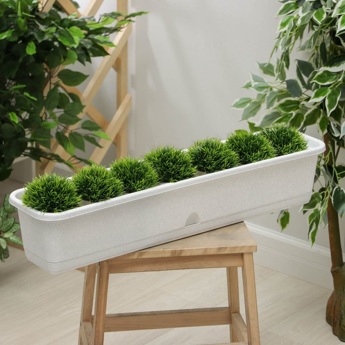 Ящик балконный с поддоном, 80 см, цвет мраморный